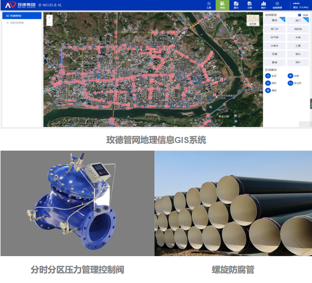 玫德集团积极响应国家号召,完善并升级了原有的智慧水务智能化管理平台,其中玫德管网地理信息GIS系统(简称GIS系统)是玫德智慧水务智能化管理平台的重要组成部分,更是促进城乡供水、城镇供水一体化行业智慧水务数字化快速转型的核心产品。