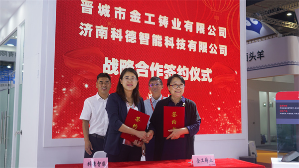 展会期间,济南科德智能科技有限公司分别与晋城市金工铸业有限公司、广东峰华卓立科技股份有限公司举行签约仪式,中国铸造协会教务处主任徐家颖、玫德集团董事局副主席刘勇见证签约。