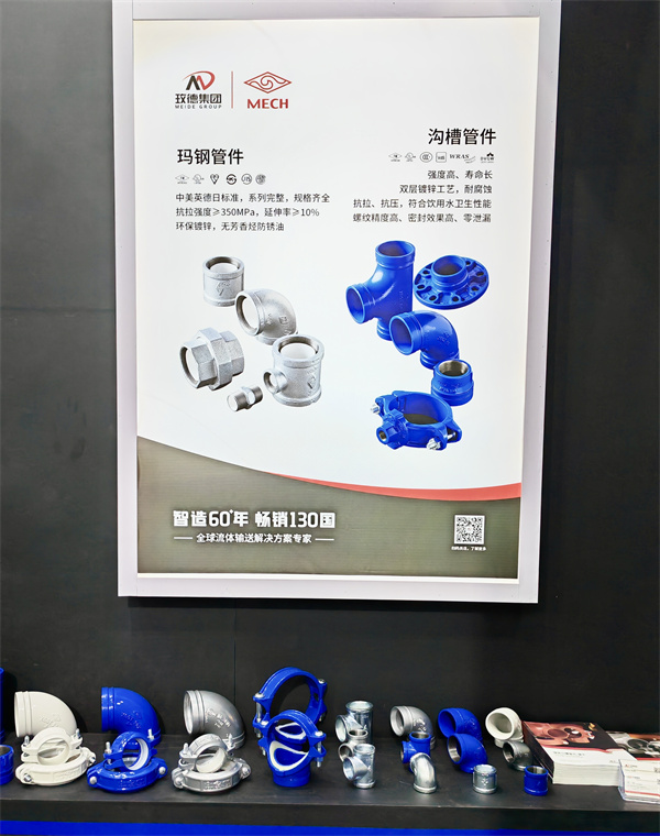玫德集团有限公司玛钢管件自1970年开始生产,具有50多年的历史,年产量全球第一,螺纹分英、美、德标准,系列完整,尺寸自DN6-150,规格齐全,产品材质抗拉强度≥350MPa,延伸率≥10%;环保镀锌,产品表面有热镀锌和热镀加电镀双层表面,外观更加光亮,采用无芳香烃防锈油,确保产品安全使用。