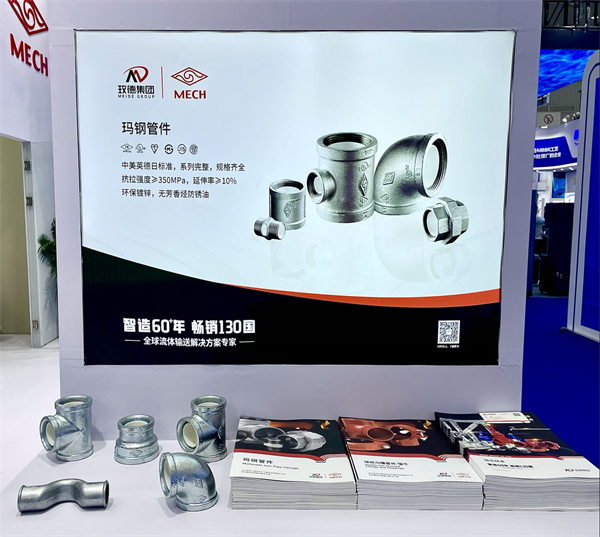 玫德集团有限公司玛钢管件自1970年开始生产,具有50多年的历史,年产量全球第一,螺纹分英、美、德标准,系列完整,尺寸自DN6-150,规格齐全,产品材质抗拉强度达到350MPa,延伸率可达到10%;环保镀锌,产品表面有热镀锌和热镀加电镀双层表面,外观更加光亮,采用无芳香烃防锈油,确保产品安全使用。