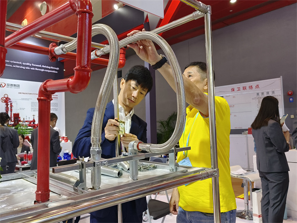 展会期间,玫德安排了满满的展示环节,多角度、全方位介绍玫德产品与解决方案,包含快装管道系统、金属软管、支吊架系列产品、阀门产品等。