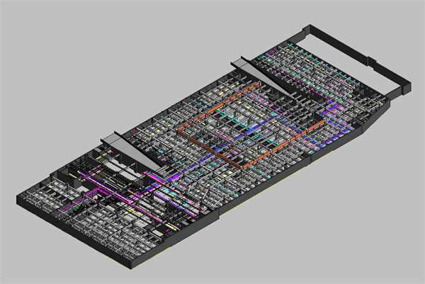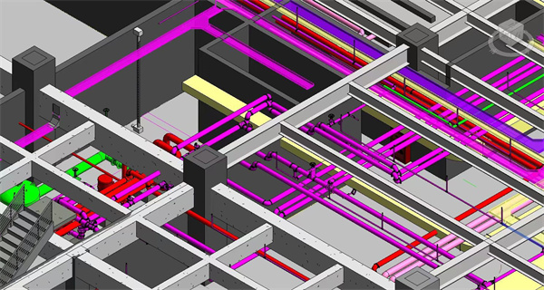 在BIM深化设计阶段,通过BIM建模技术应用于构建三维模型,设计人员在图纸中进行管道系统的优化和调整,对碰撞点位进行检查,并出具解决方案,并且减少了出现错误的可能性。