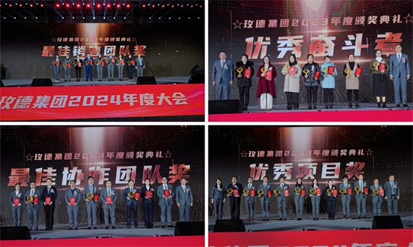 一分耕耘,一分收获。年会颁发了最佳销售团队奖、最佳协作团队奖、优秀项目奖、玫德科技奖和技术引进奖、优秀奋斗者奖项,并对卓越绩效团队进行表彰。身边的榜样,前行的力量!希望全体员工不懈进取,进一步增强干事创业的激情,在集团新的发展征程中担当作为、再立新功。