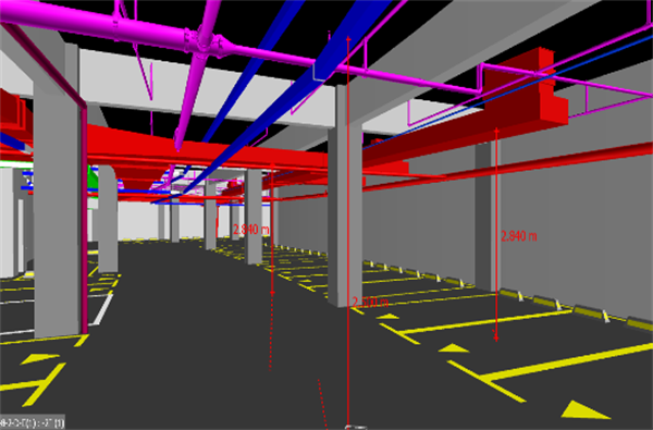 利用BIM模型,提前检查各区域的净空高度,进行确认,对不符合规范及有特殊要求的区域进行调整,减少后期安装过程中的拆改,降低工程成本,满足客户的使用要求。