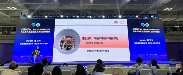 玫德集团研发技术总工程师陈卫东以《管道抗震、塌陷灾害应对方案探讨》为主题与现场专家、同行进行了技术交流。针对地震灾害、沉降塌陷灾害案例,通过多台阵振动台试验、模型验证,玫德发现解决埋地管线抗震问题,柔性连接方案是一种很好的经济实用的解决方案。