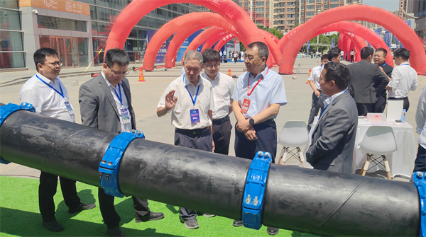 玫德集团展示了涵盖智慧供水、高效排水、管网监测等环节的全场景解决方案,带来大口径钢管柔性连接技术、水厂一站式解决方案、城市管网一站式解决方案,以及各类水表、不锈钢管材管件、直缝钢管、阀门、玛钢管件、沟槽管件等,吸引了众多与会嘉宾驻足交流。