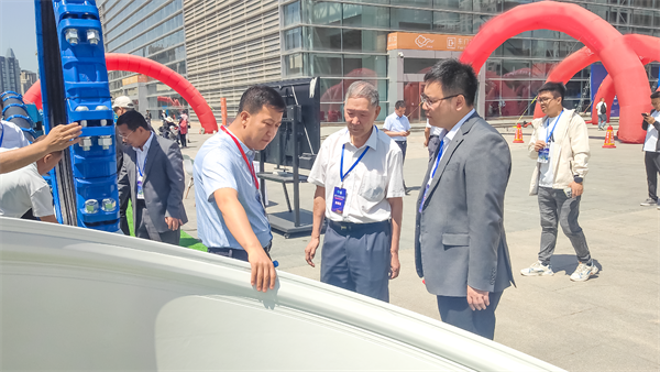 原甘肃省水利厅一级巡视员、甘肃省水利学会理事长吴天临参观玫德集团自主研发的大口径钢管柔性连接技术